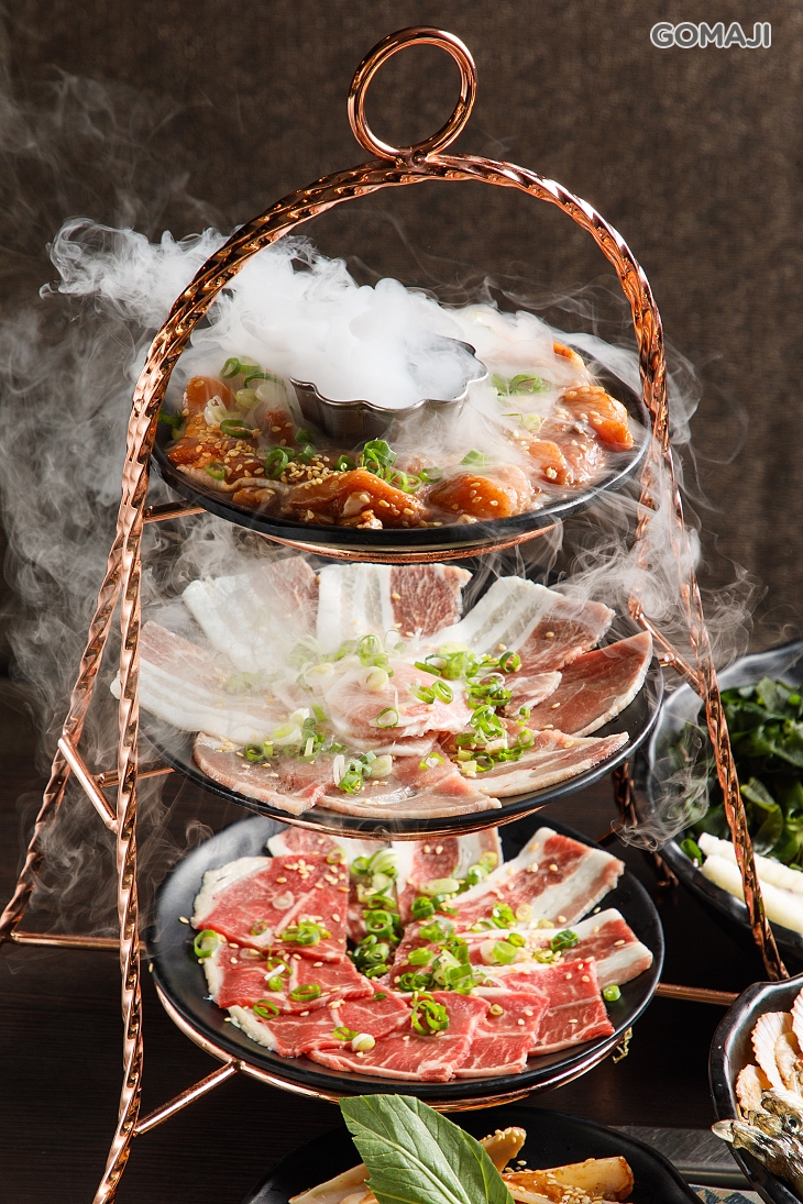 豪華三層架,嚴選多樣頂級肉質,新鮮上桌,雲霧繚肉,彷彿於仙境般出場的夢幻逸品!