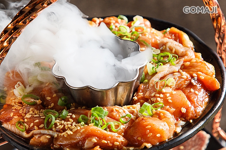 肥美霜降滋滋泛亮,陣陣縈升撲鼻肉香,嚴謹而體貼的經營理念,一窯炭火熾烈,一如大和園始終如一的沸騰敬意,感受最誘人的燒肉魂。
