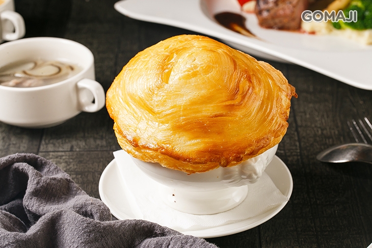 特製的法式波蘿酥皮奶油濃湯,奶香醇郁、滴滴皆精華,搭配金黃誘人的酥皮一起享用,美味更加乘!