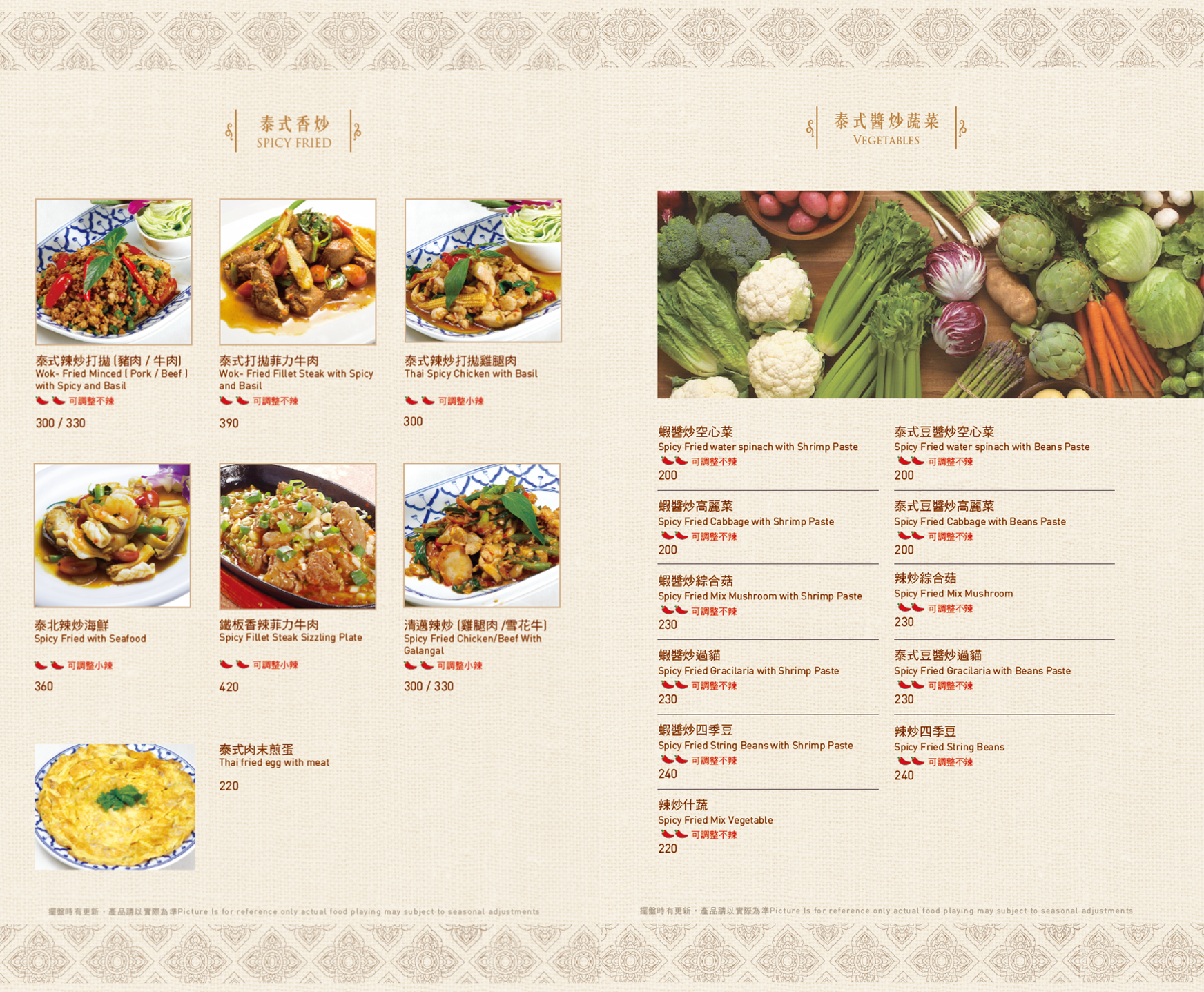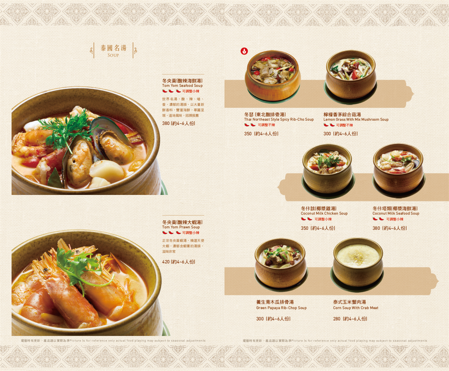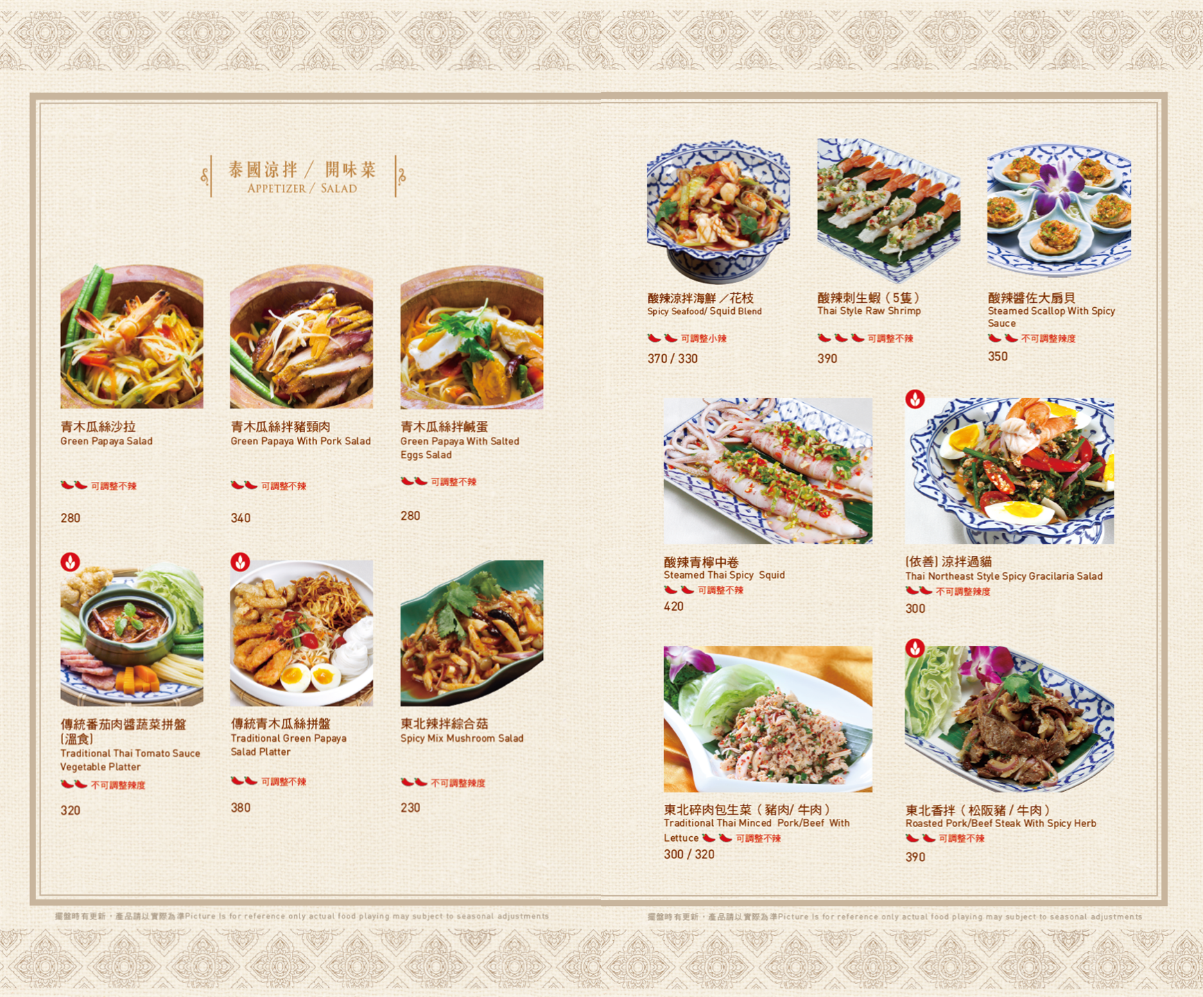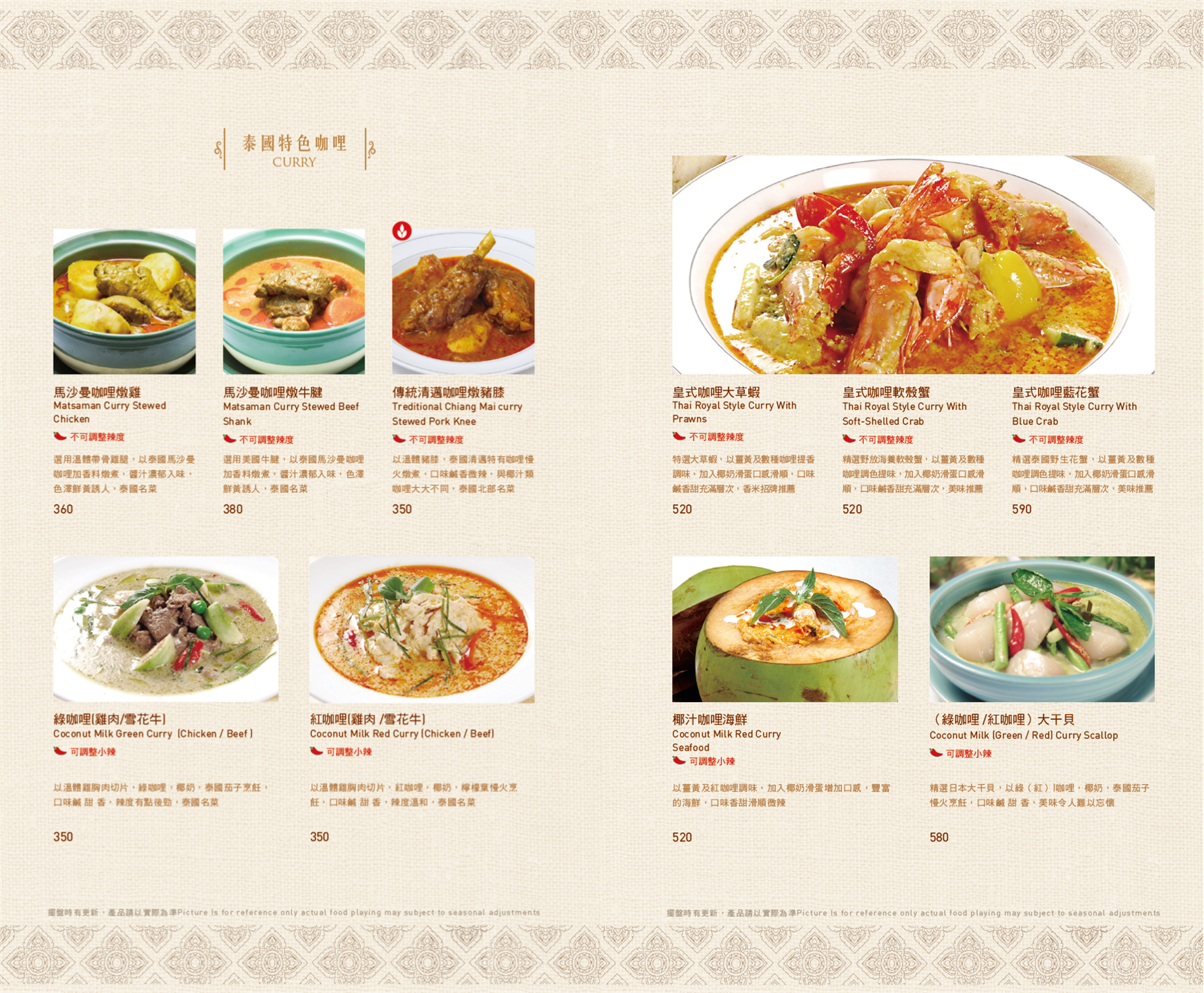 ▼ 泰式醬料 ▼ 瑪莎曼咖喱牛腱 / 伊善涼拌過貓 / 泰北咖哩豬膝 MENU ※菜色內容依季節時令調整,實際菜色、價目依現場提供為主