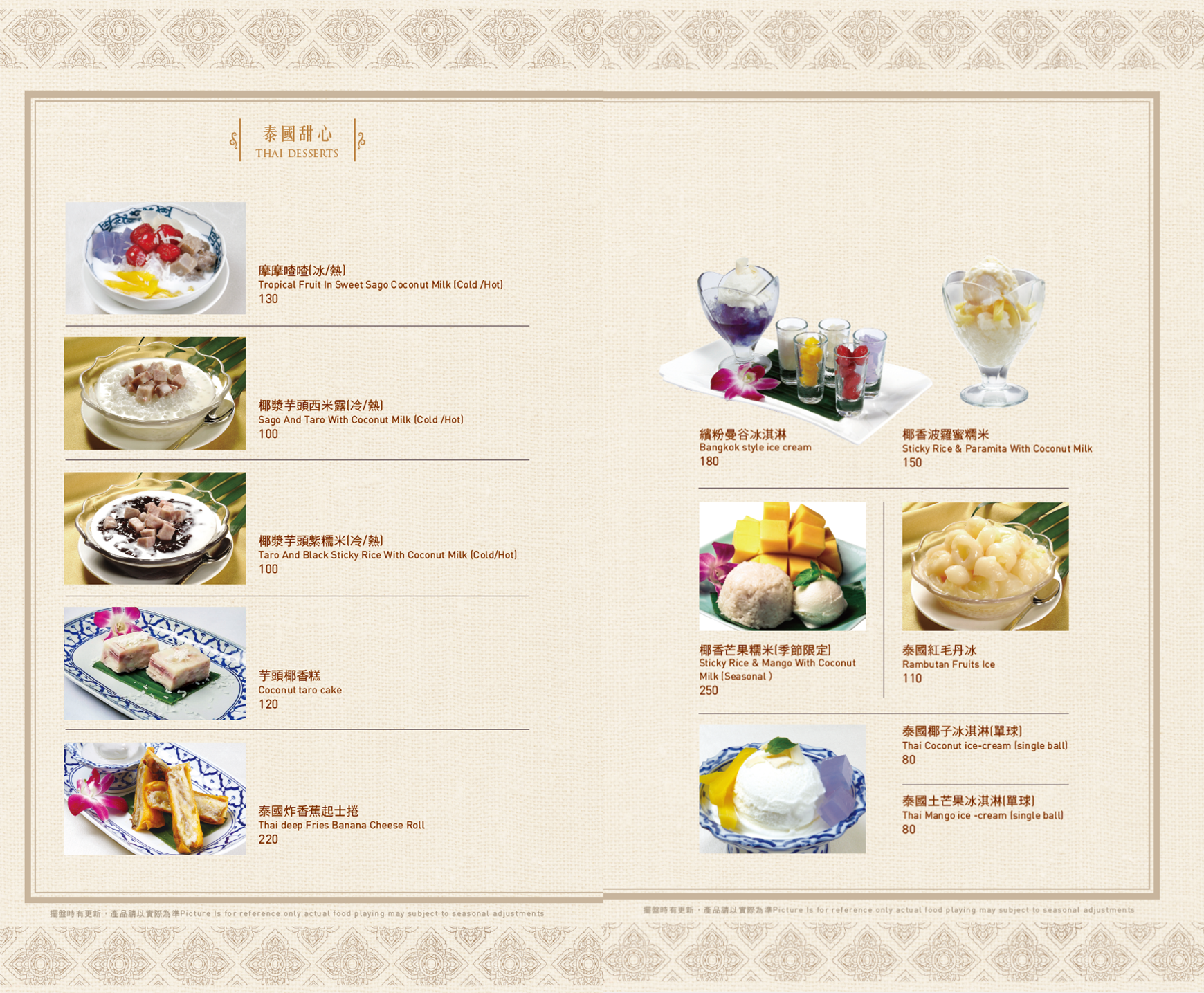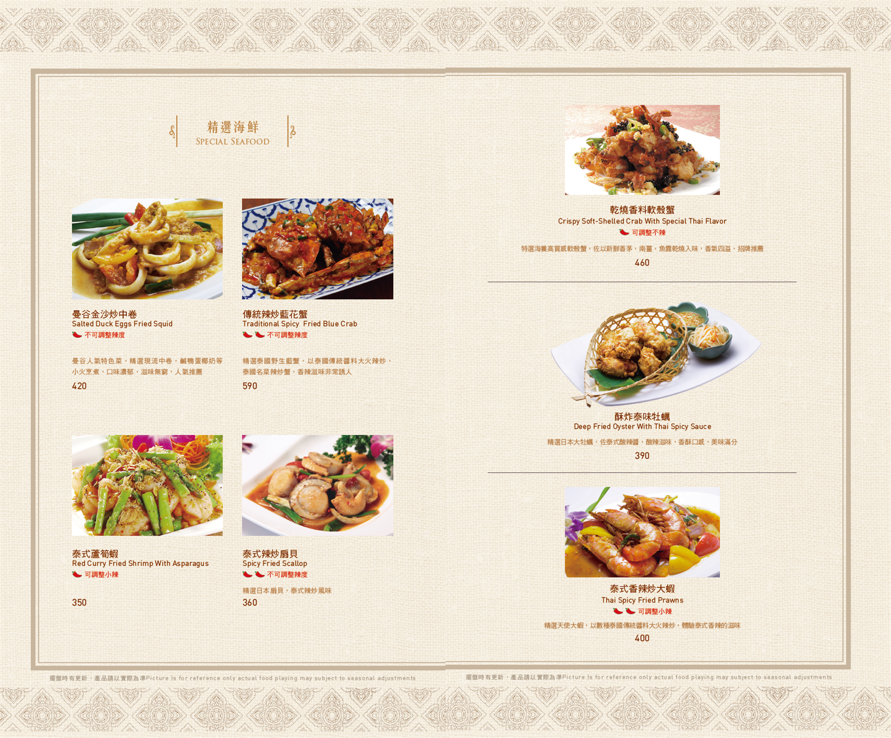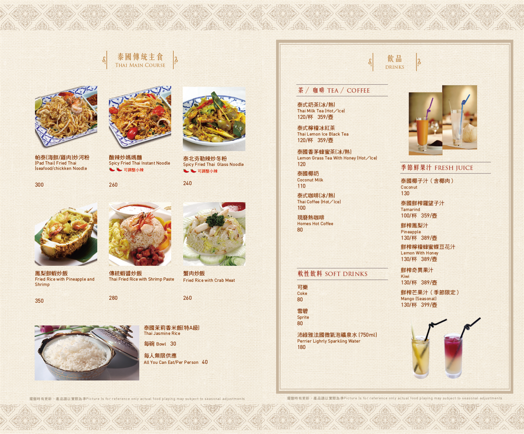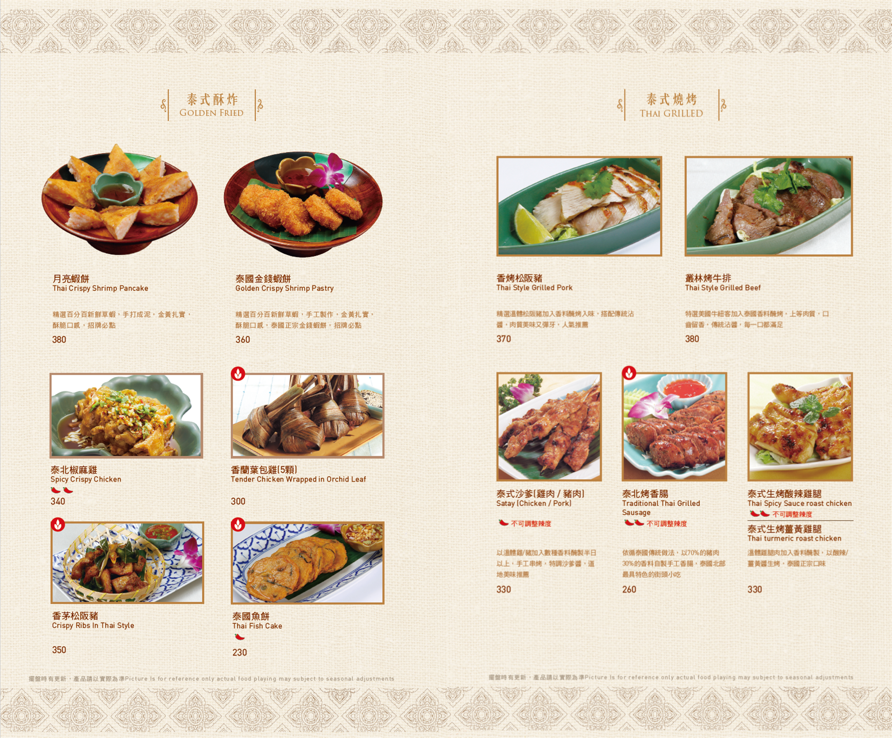 ▼ 泰式醬料 ▼ 瑪莎曼咖喱牛腱 / 伊善涼拌過貓 / 泰北咖哩豬膝 MENU ※菜色內容依季節時令調整,實際菜色、價目依現場提供為主