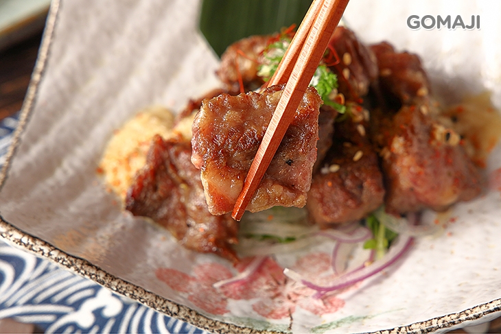 柔嫩細緻的骰子牛,穿著一襲深沉迷人的外衣,咬下時鹹鹹香香的滋味滿溢唇齒,帶有芥子香氣,融和鮮甜的汁液,交織出豐富奢華的享受!