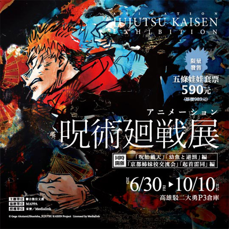 超人氣漫畫「咒術迴戰」自2020年改編動畫後引爆全球熱潮,成為現象級動畫大作,日本巡迴展內容分兩期展出,本次「咒術迴戰展」海外特展集結所有作品,一次完整呈現給台灣觀眾,包含數百幅原畫、分鏡圖、等身FRP、巨型動畫投影及名場還原等豐富展品,帶領觀眾重溫記憶中的感動!