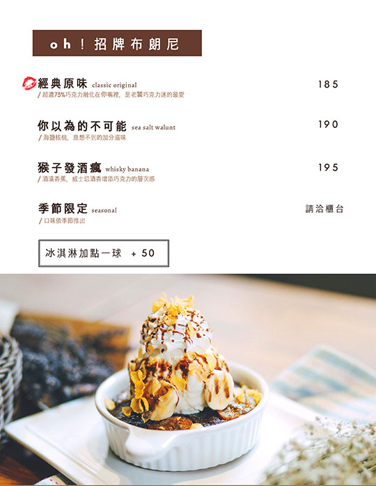 位於台中市西屯區大容西街 53 號的 Oh! Sweet Diner 甜點餐廳,專營甜美迷人的美式布朗尼,色香味俱全,又有一定的飽足感,十分醉心。少女們這下有口福囉!快揪你的姊妹淘,一塊來恣意地享受美味的午茶時光吧!