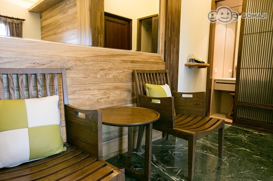 無論是房內傢具擺設、陽台景觀座椅,都是木質藤編的自然大地風格,讓旅人置身在原始純樸又優質的環境。