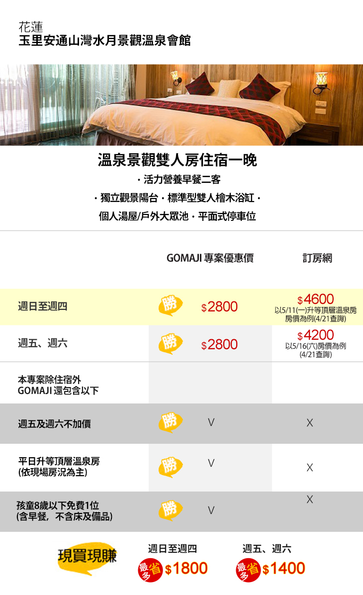 【花蓮-玉里安通山灣水月景觀溫泉會館】感謝麻吉們熱烈搶購,已全數賣光光。
