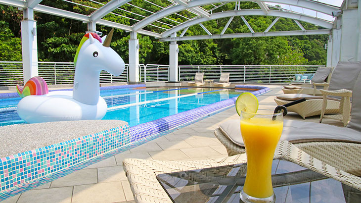 洗盡塵俗、滌盡塵勞,俯仰天地之間,從容和諧地與大自然融為一體。露天游泳池結合水療SPA池的渦漩、水柱、氣泡按摩床,重新喚回自己的心魂,尋回再出發的能量……。