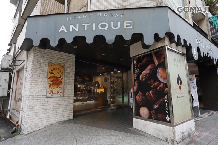 隱身在捷運忠孝新生站的【愛天空烘焙屋ANTIQUE-Heart Bread】,為日本名古屋人氣麵包店,低調、簡約的外觀,裡頭可是賣著一樣樣令饕客為之瘋狂與驚豔的手做烘焙麵包,其中,從玻璃門上的甜甜圈把手就可以看出,是【愛天空烘焙屋ANTIQUE-Heart Bread】的超人氣!推開門,撲鼻而來的麵包香,五味雜陳!麵粉與糖粉融合出的獨特香氣,在空氣中瀰漫的甜蜜氣息,讓人垂涎欲滴!配上以撲克牌花色圖騰及甜甜圈特色擺飾,讓麵包店質感更上一層!