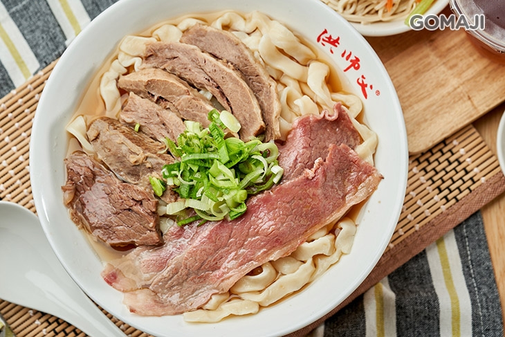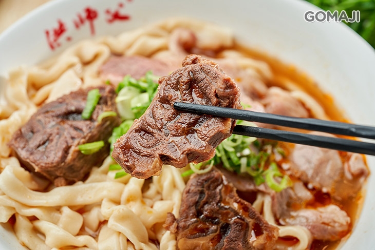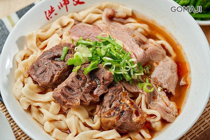 挑選牛隻中運動量最大的牛腱子肉,巧妙搭配脂肪豐厚又均勻的牛小排,和一般坊間常見的紅燒牛肉麵作出關鍵性的區隔,適度燒烤後的牛小排,肉香加倍香濃,稍帶些許焦香,為【洪師父】獨門的紅燒湯底,增添一分與眾不同,這獲得「2007 牛肉麵節比賽」紅燒組冠軍的金牌美味,您一定不容錯過!
