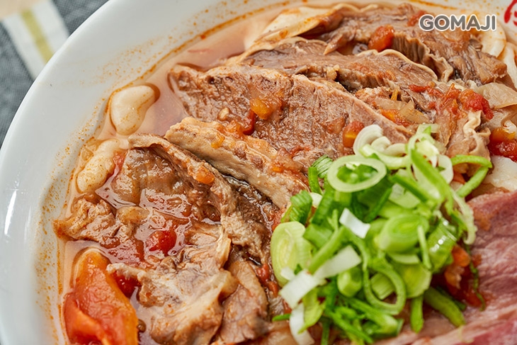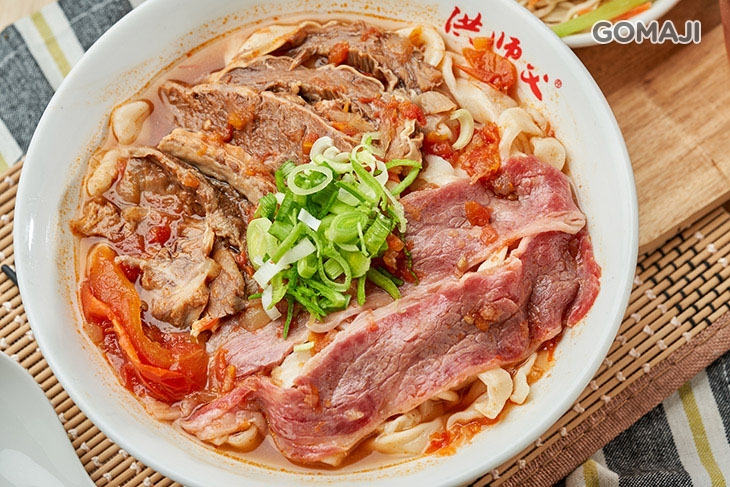 勇奪「2008 牛肉麵節比賽」創意冠軍的紅麴番茄牛肉麵,巧妙將天然發酵、健康美味的紅麴,佐以新鮮番茄、木瓜、洋蔥,以及對健康十分有益處的洛神、仙楂、陳皮、烏梅、甘草…等,各樣有益身體的食材入湯精燉,帶有番茄紅的湯水,風味清甜不膩,散發著自然的果香,獨具匠心的美味,讓人驚嘆不已!
