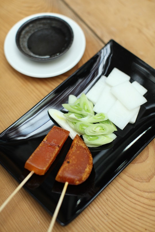 4.【火烤烏魚子】(烏魚子1片約12-15g +高粱酒+白蘿蔔+蒜苗)