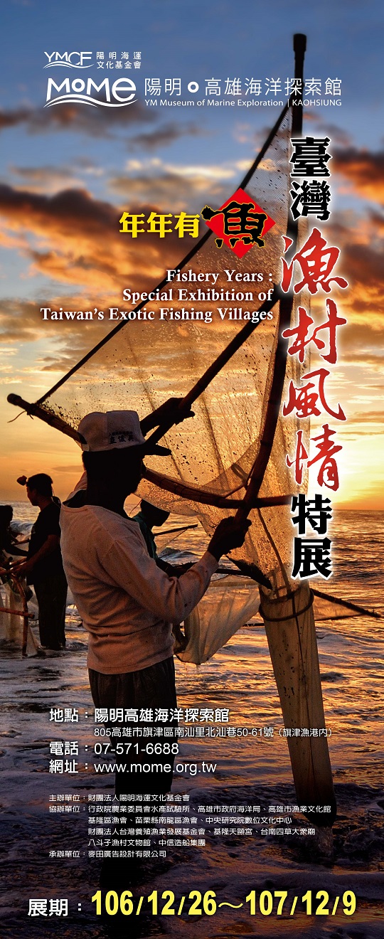 財團法人陽明海運文化基金會特舉辦「年年有魚-臺灣漁村風情」特展,希望透過臺灣漁港、漁船、食魚與漁村文物的展示,讓大家更加了解臺灣漁村漁情、認識臺灣漁業,更感受海洋的豐富與危機,期許大家珍視保護我們的漁村與海洋,終能年年有餘。