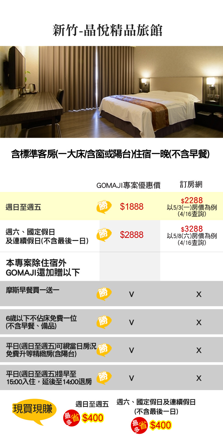 【新竹-晶悅精品旅館】感謝麻吉們熱烈搶購,已全數賣光光。