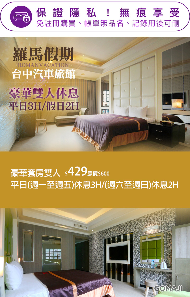【台中-羅馬假期汽車旅館】感謝麻吉們熱烈搶購,已全數賣光光。
