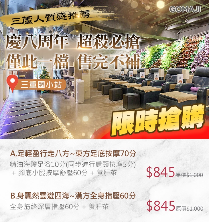 【八方悅足體養生會館】感謝麻吉們熱烈搶購,已全數賣光光。