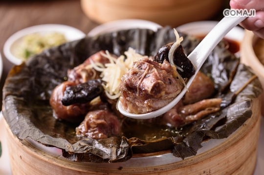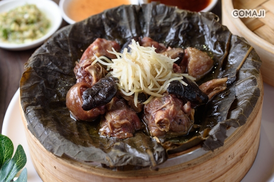 以荷葉包裹雞肉放入蒸籠裡蒸熟,雞肉充份吸收荷葉獨特的香氣,嚐起來非常迷人~