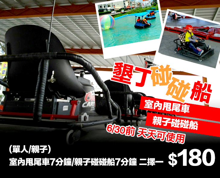 本次推出甩尾車及親子碰碰船之人氣強打活動,透過甩尾車、碰碰船增添彼此感情,考驗自我專注與耐力,美好的假期還沒開始規劃嗎?不妨透過這難得機會,購入一波,揪伴來體驗!為彼此創造美好回憶!