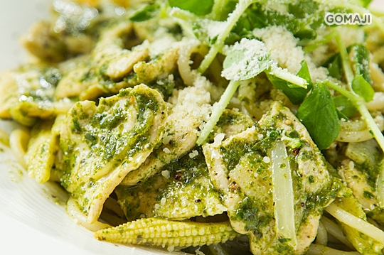 主廚特調的青醬,香氣濃郁,帶有蘿勒的特殊香氣,搭配軟嫩多汁的雞肉,煮得恰到好處的義大利麵條,每一口都教人心醉!