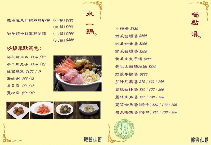 韓舍小館 MENU
