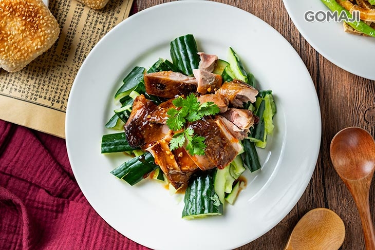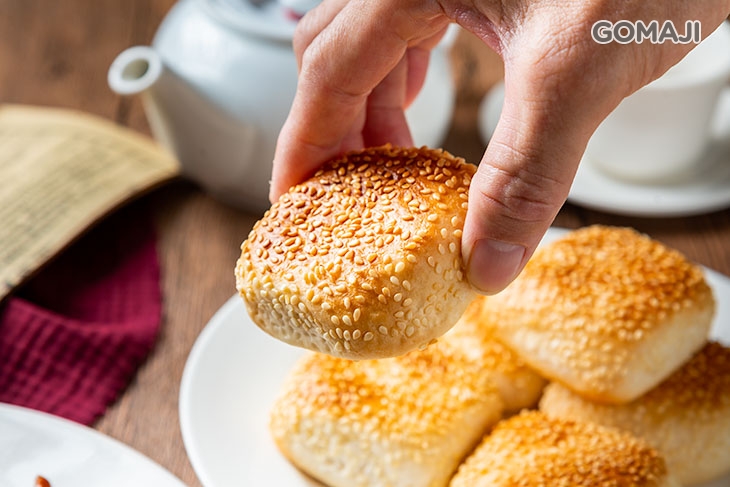 將現烤出爐的芝麻酥餅,裡頭放進店家自製的京醬肉絲、小黃瓜品嚐。一口咬下,餅皮帶點微微焦香的芝麻酥餅,濃厚的芝麻味在嘴裡緩緩釋放,與裡頭鹹香入味的肉絲還有小黃瓜相佐,軟嫩、清爽!讓人吃過一次便念念不忘!