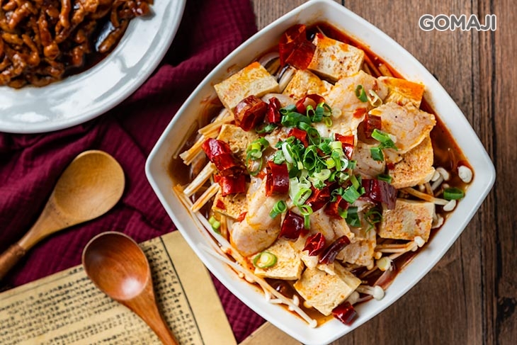 喜歡吃辣的麻吉,這道水煮魚片我想非常適合您!以各式精選天然辛香料烹飪製成的麻辣湯頭為基底,再加入新鮮魚片、豆腐、金針菇等嚴選食材一同烹煮,湯底越煮越紅、越煮越香 ~ 趁熱品嚐,魚肉軟嫩細緻、一咬即散啊 ~ 辛辣過癮的滋味,相當迷人開胃,再配上些許蔥花點綴提味,無辣不歡的您,一定要點來試試才不虛此行啊。
