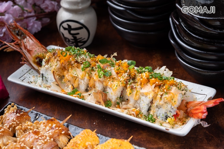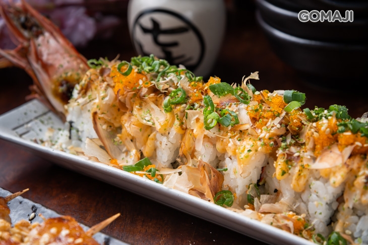 在師傅的巧手捏製之下,米飯大小適中,與閃耀著透亮光澤的魚卵相搭,再淋上特製醬料與柴魚片提味,底層還是超可口的大蝦,整體造型像極了俏皮可愛的毛毛蟲,令人看著會心一笑,更捨不得馬上吃完它,從細節中就可以感受到店家的創意與用心,來這裡不點上一份怎麼行!