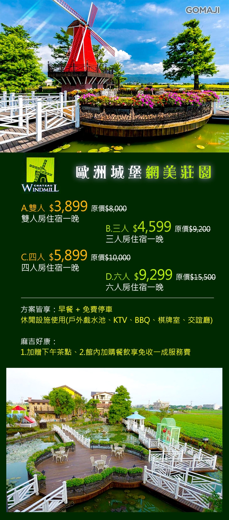 ★ 莊園多元休閒設施使用:戶外戲水池、KTV、BBQ、棋牌室、交誼廳,度假不無聊、放空超愜意!