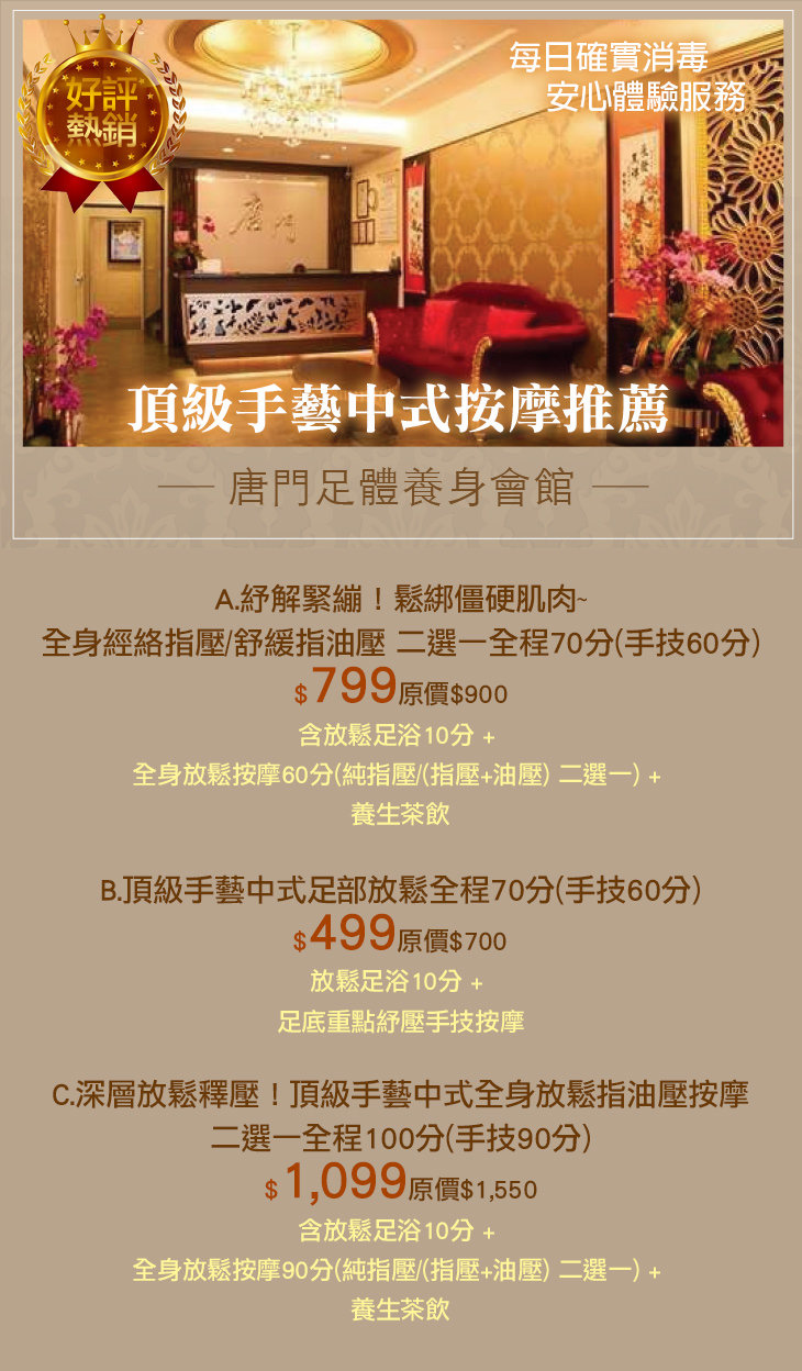 【唐門足體養身會館】富麗堂皇的裝潢和指壓師精湛的專業技巧,歡迎親自體驗!