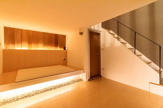 樓中樓的設計,進房為簡約的小客廳,上樓後為臥房,以日式風格設計,非常適合和三五好友或闔家親子一同前來,享受專屬的歡樂天地!