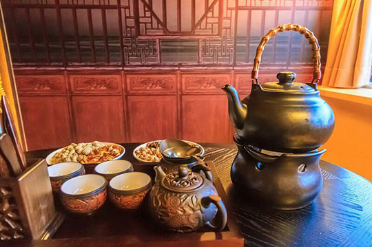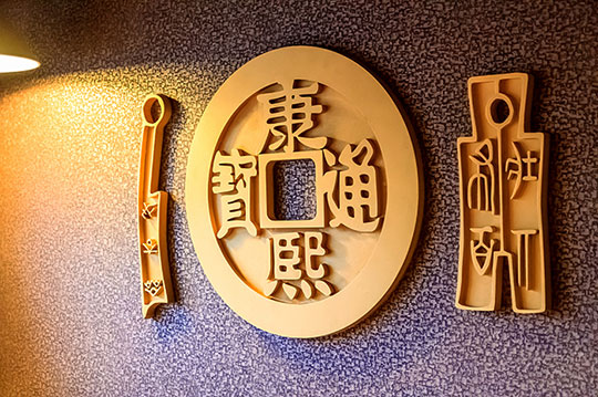 以黃金主題為設計發想、傳統錢莊為妝點佈置背景,創意呈現頗具禪意的傳統中國風「黃金錢莊」主題場景。
