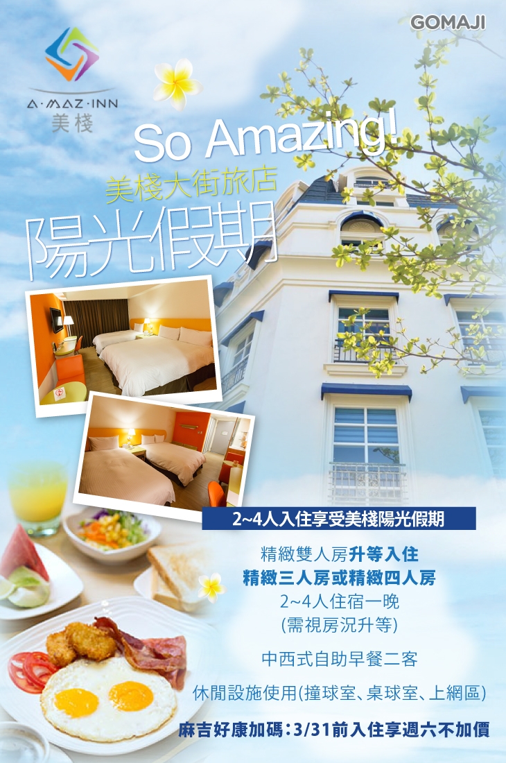 以國境之南的熱情美景為號召,由知名連鎖飯店集團麗寶機構觀光事業所推出的旅店新品牌美棧大街旅店!以便捷(Convenience)、愜意(Cozy)、簡約(Conservation)、精采(Cool)4C核心精神,提供恰到好處的旅宿感受,邀請您一起享受旅行中每一個Amazing 時刻!
