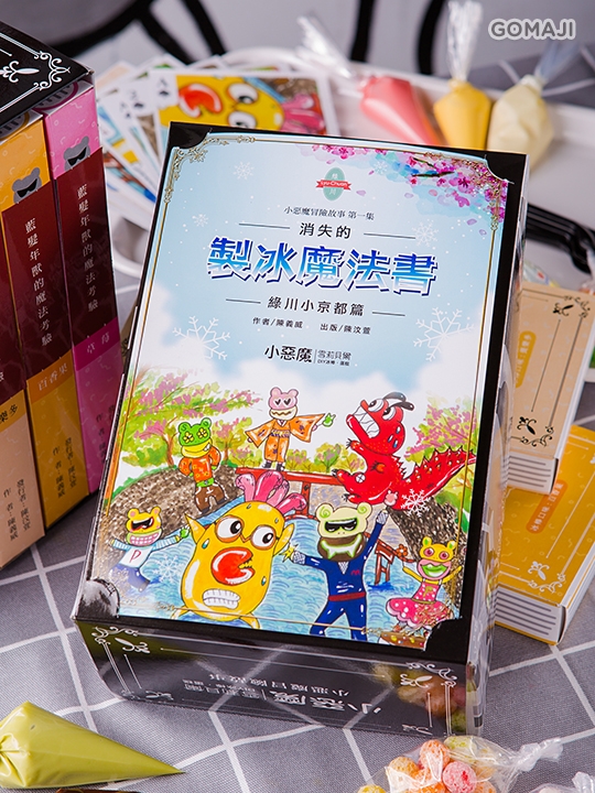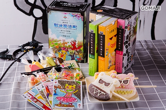 消失的製冰魔法書一份(內附小惡魔彩繪冰棒五入 + 消失的製冰魔法書故事卡一份 + 小惡魔造型撲克牌六張 + 卡通造型餐具一副 + 糖果裝飾品一組 + 巧克力畫筆一組 + 影音)