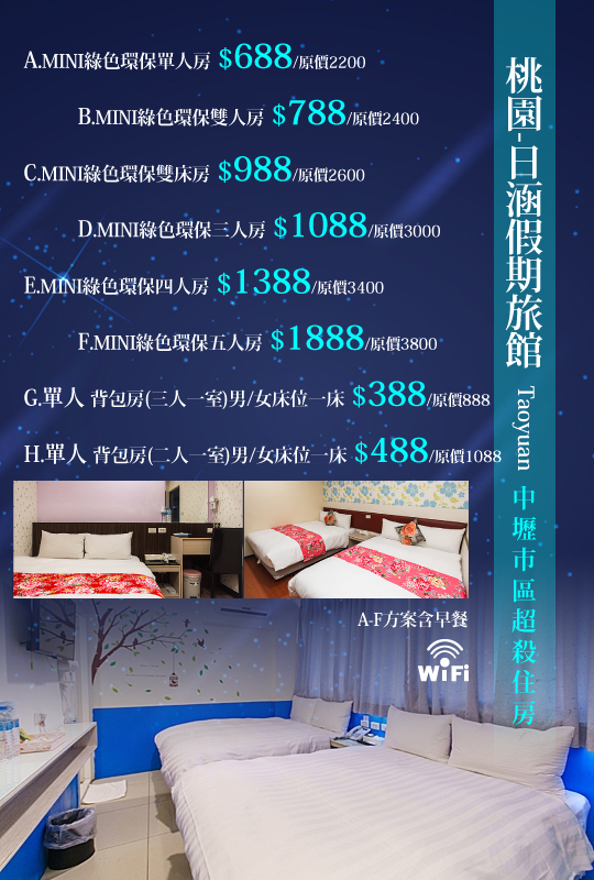 【日涵假期旅館】位於中壢市中心,距中壢火車站(後站)僅50公尺,鄰近中壢市最大的中壢觀光夜市和中原美食夜市,吃喝玩樂皆便利,提供所有旅客平價舒適的旅憩體驗!