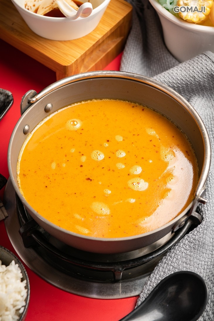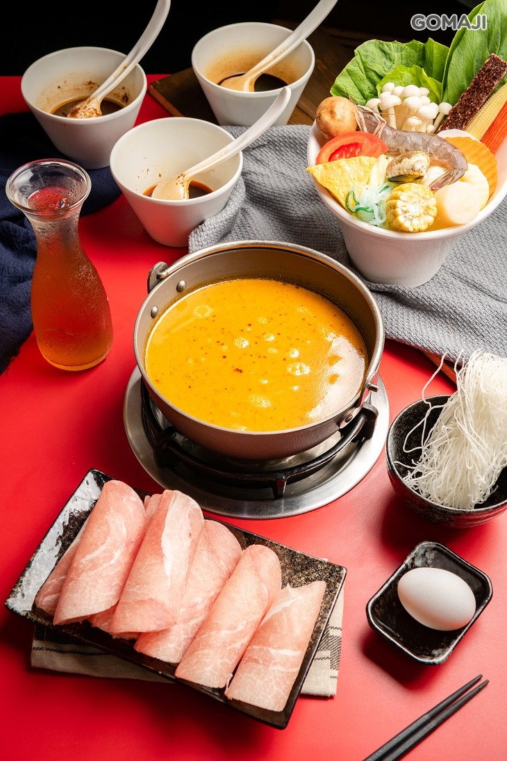 嚴選咖哩,搭配自製高湯,文火烹煮,金黃湯底色澤,散發濃郁迷人的香氣,火鍋店瞬間被咖哩佔據,依個人喜好加入喜歡的食材,為肉片或是蔬菜換上美麗衣裳,讓食材美味依舊,風味更添加。