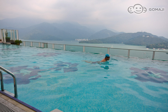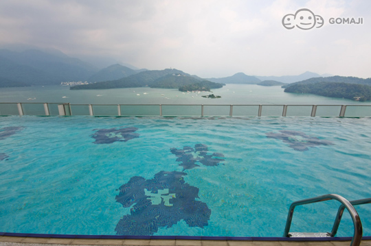 透過玻璃造型設計,創造真正無邊際的視覺效果,彷彿徜徉於日月雙潭、水天一色的雲端美景之中,並設國內首創水中吧臺,在運動之餘享受日月行館提供貼心的餐飲服務。
