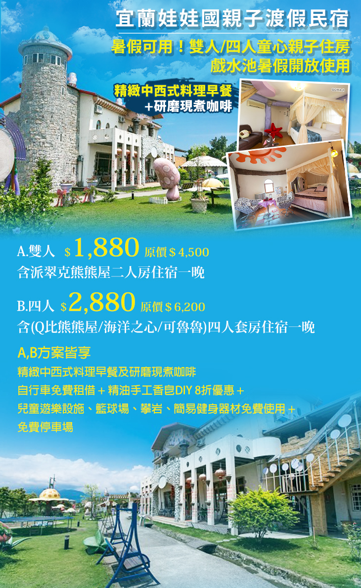 【宜蘭-娃娃國親子渡假民宿】感謝麻吉們熱烈搶購,已全數賣光光。