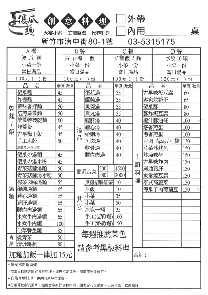 招牌必吃的傻瓜麵,是店家主打的獨門料理!條條勁道的麵條,透過特製醬料均勻攪拌入味,搭配甜而不膩的豆棗享用,獨樹一格的美味綻放口中,保證讓您驚艷萬分、一品難忘!