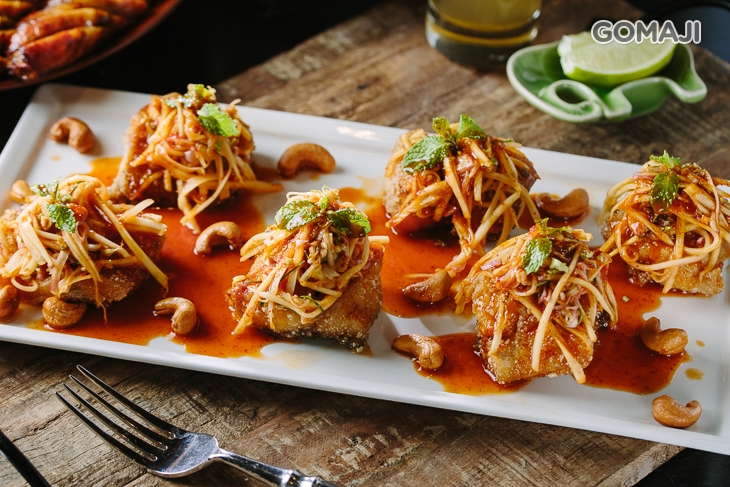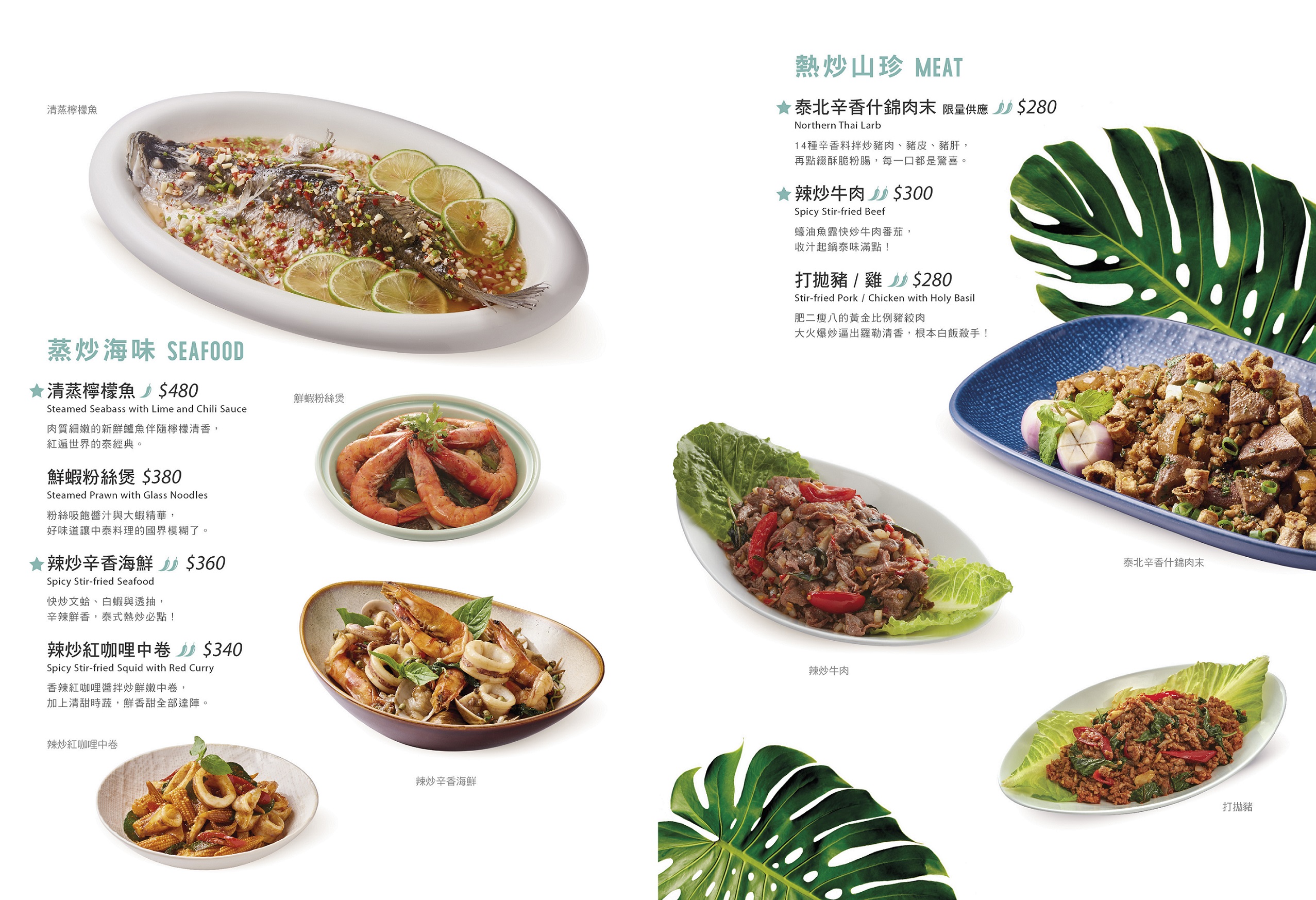 嚴選鱸魚腹部放入美國香菜、鋪上厚厚辛香料,以烘焙紙包覆細心蒸烤,結合新鮮海味與泰式料理精髓,一上桌香味撲鼻而來,入口鮮中帶香,是饕客心中的必吃料理!