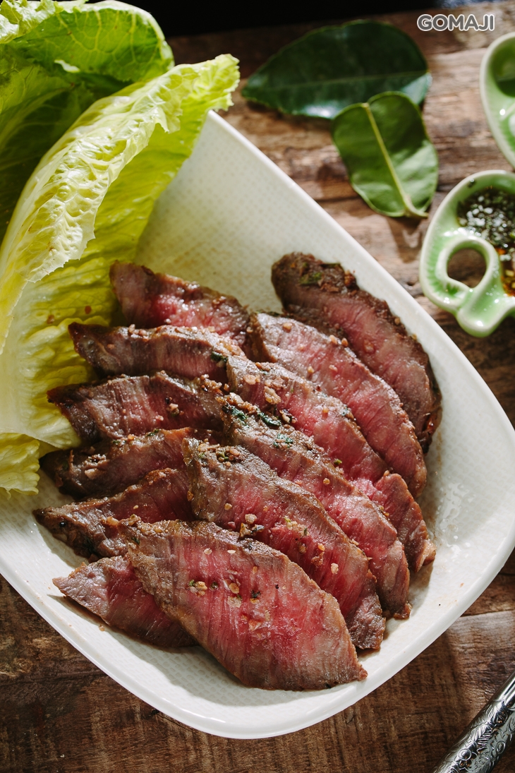 特選牛肉切片搭配新鮮蔬菜與香料,襯托食材的鮮香甜美,大滿足的肉食開胃菜。