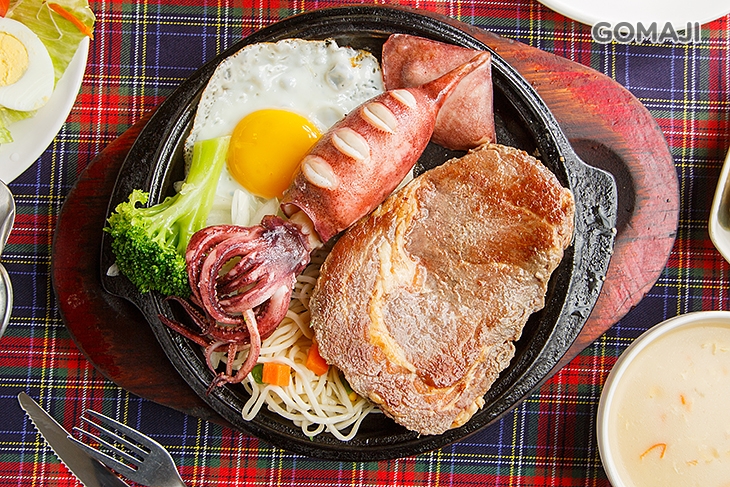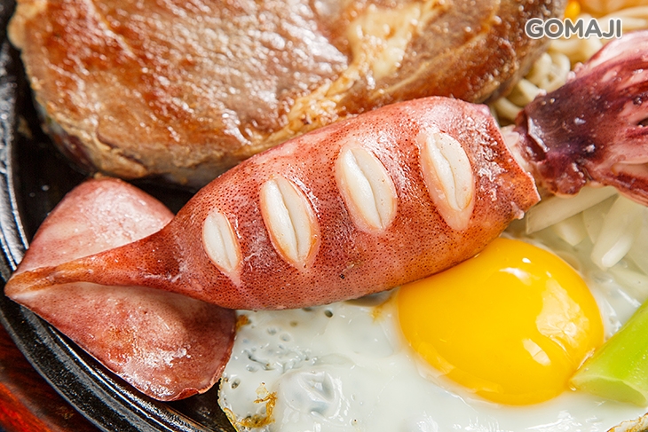 單一太乏味,雙拼才夠味!雞排、牛排、豬排任選一,再搭配新鮮深海魷魚,多重饗宴的海陸滋味,不點就可惜啦!魷魚紮實富有嚼勁,肉彈味鮮!在嘴裡咀嚼,不時散發魷魚專屬的獨特香氣,美味等級給它五顆星的美評!