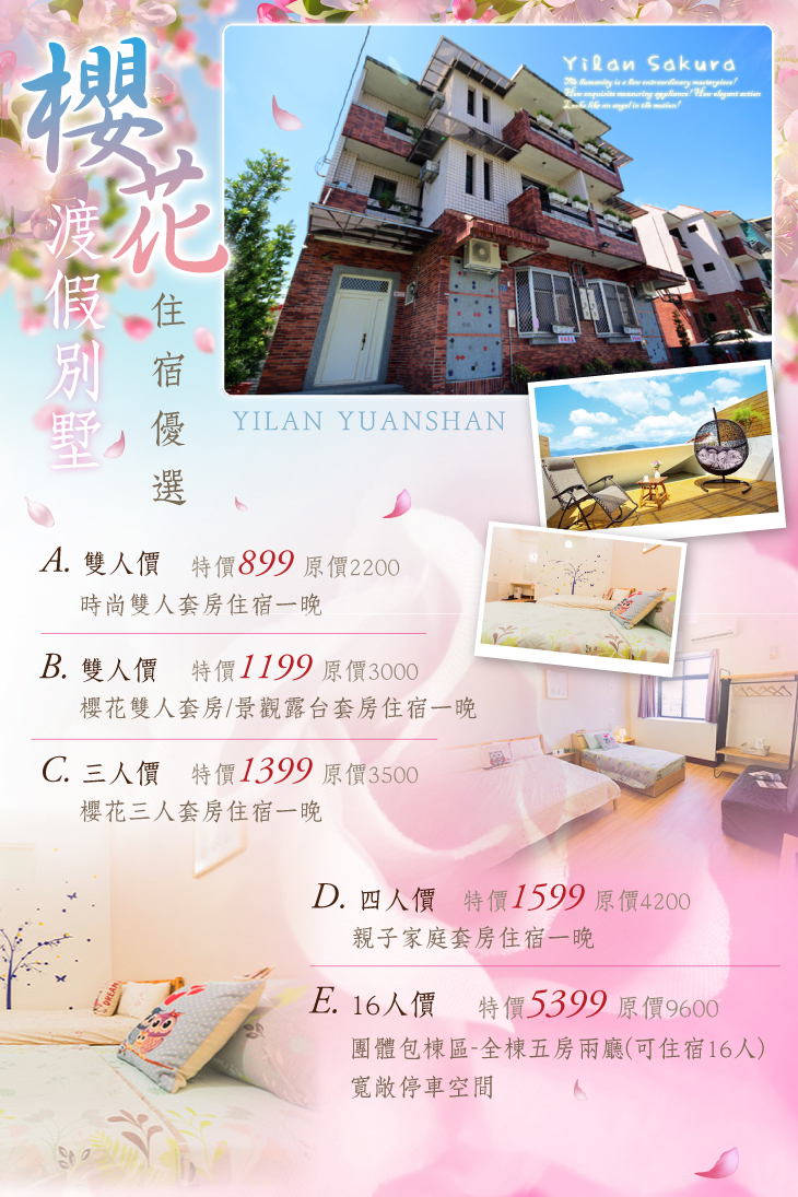 【宜蘭-櫻花渡假別墅】感謝麻吉們熱烈搶購,已全數賣光光。