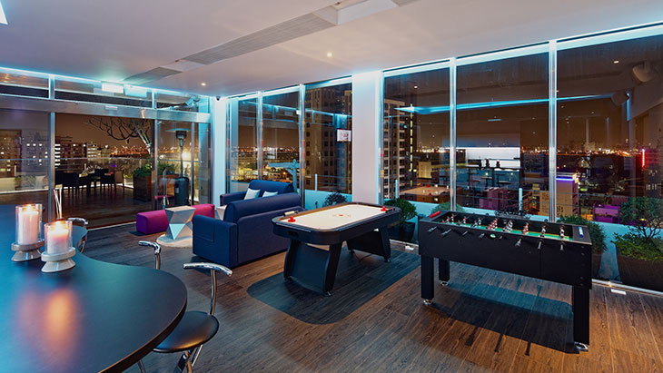 專屬於房客的空間,能俯視整個逢甲旅館商圈,提供全天候 24 小時飲品,您可以自在的翻閱書籍、做為遊憩空間或者輕量運動,讓旅程更加有趣豐富。