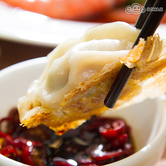 使用特別比例的麵粉水,加上小心掌握火侯,才能煎出香脆美麗的冰花煎餃。有如雪花般輕薄香脆的麵皮,給人視覺與味覺的雙重享受,內餡鮮熱多汁,沾點醬油,享受燙口內餡與酥脆的外皮,在口中散發出誘人香氣。