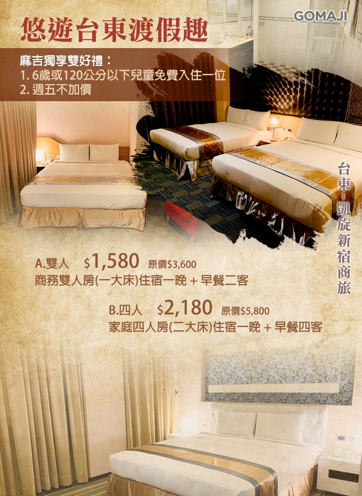 【台東-凱旋新宿商旅】感謝麻吉們熱烈搶購,已全數賣光光。