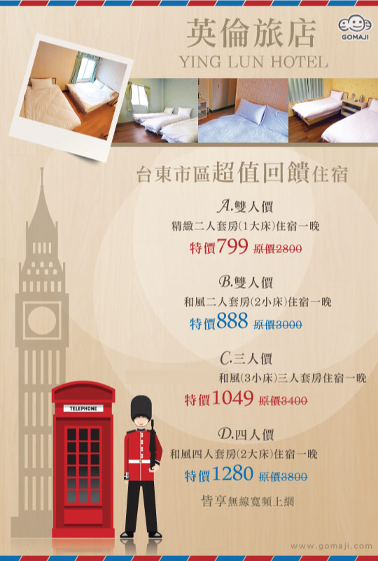 【台東-英倫旅店】感謝麻吉們熱烈搶購,已全數賣光光。