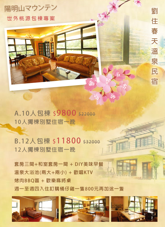 【陽明山-劉住春天溫泉民宿】感謝麻吉們熱烈搶購,已全數賣光光。