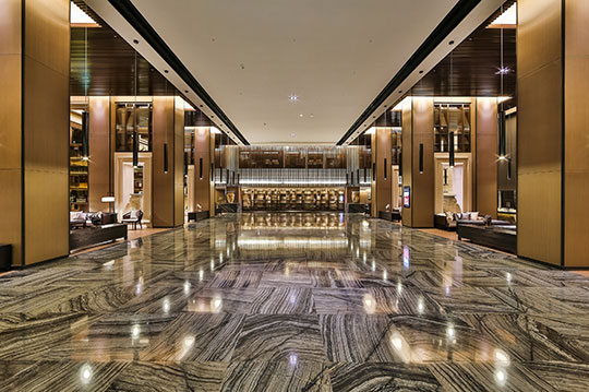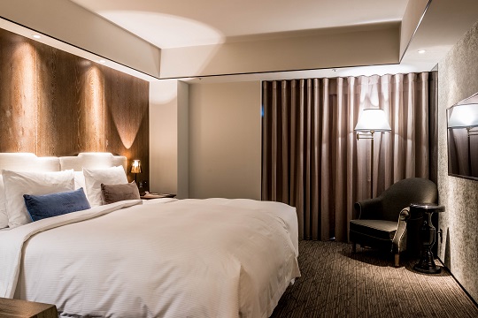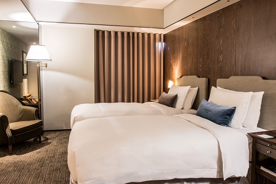 俐落的線條與杏灰色系交織高雅大器,木質建材與金屬鐵件搭配,點綴華麗顯露時尚氛圍。無框衣鏡將內和外空間連結,營造舒適、品味卓越的五星級住宿環境。