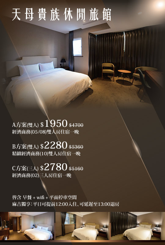 【台北-天母貴族休閒旅館】感謝麻吉們熱烈搶購,已全數賣光光。