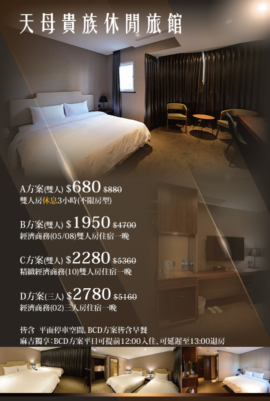 【台北-天母貴族休閒旅館】感謝麻吉們熱烈搶購,已全數賣光光。