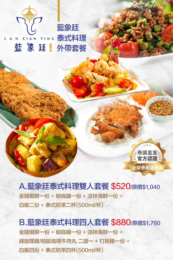 A.藍象廷泰式料理雙人套餐
